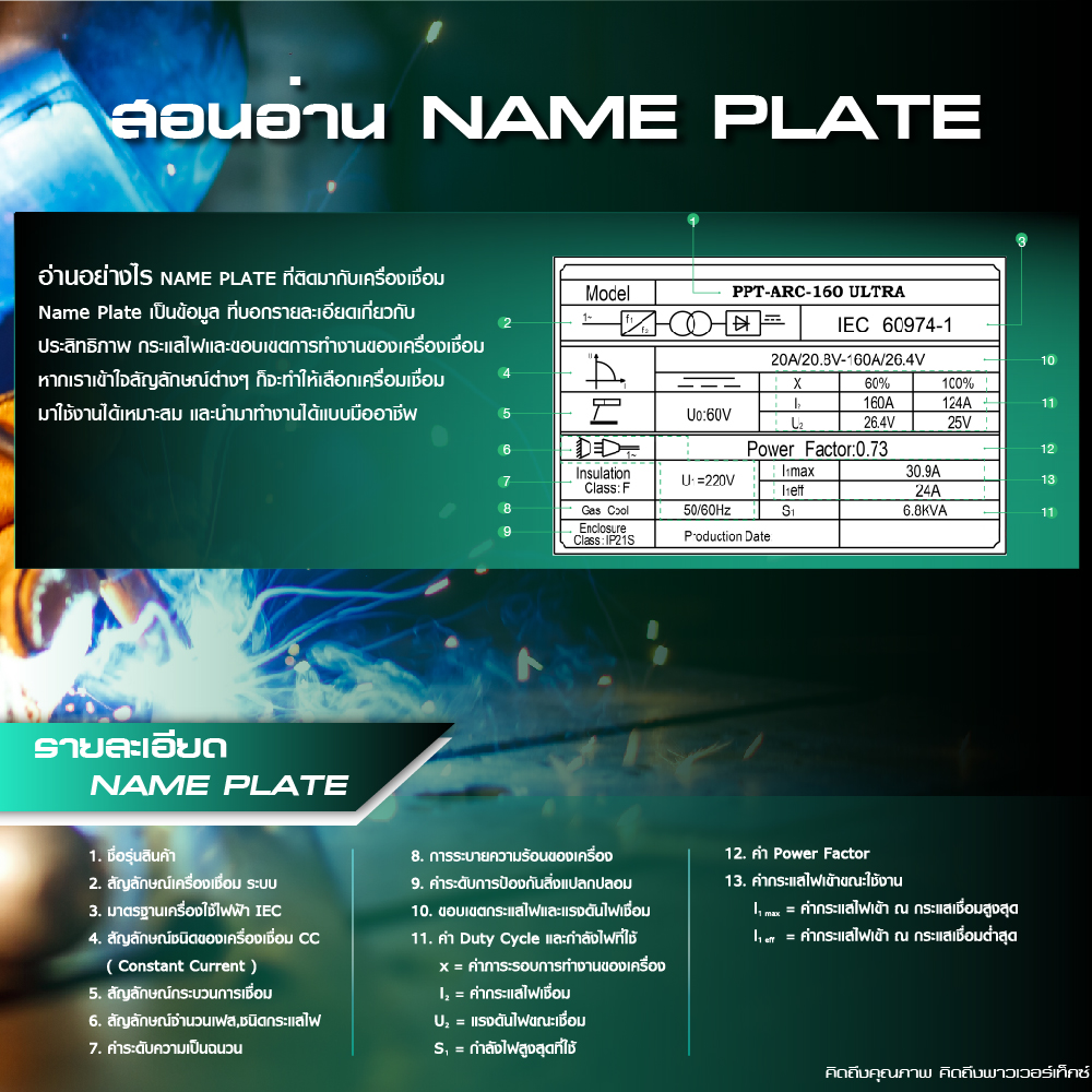 โดยจะเป็นการบอกถึงข้อกำหนดทางเทคนิคที่จำเป็นที่เครื่องเชื่อมนั้นได้รับการออกแบบมา
