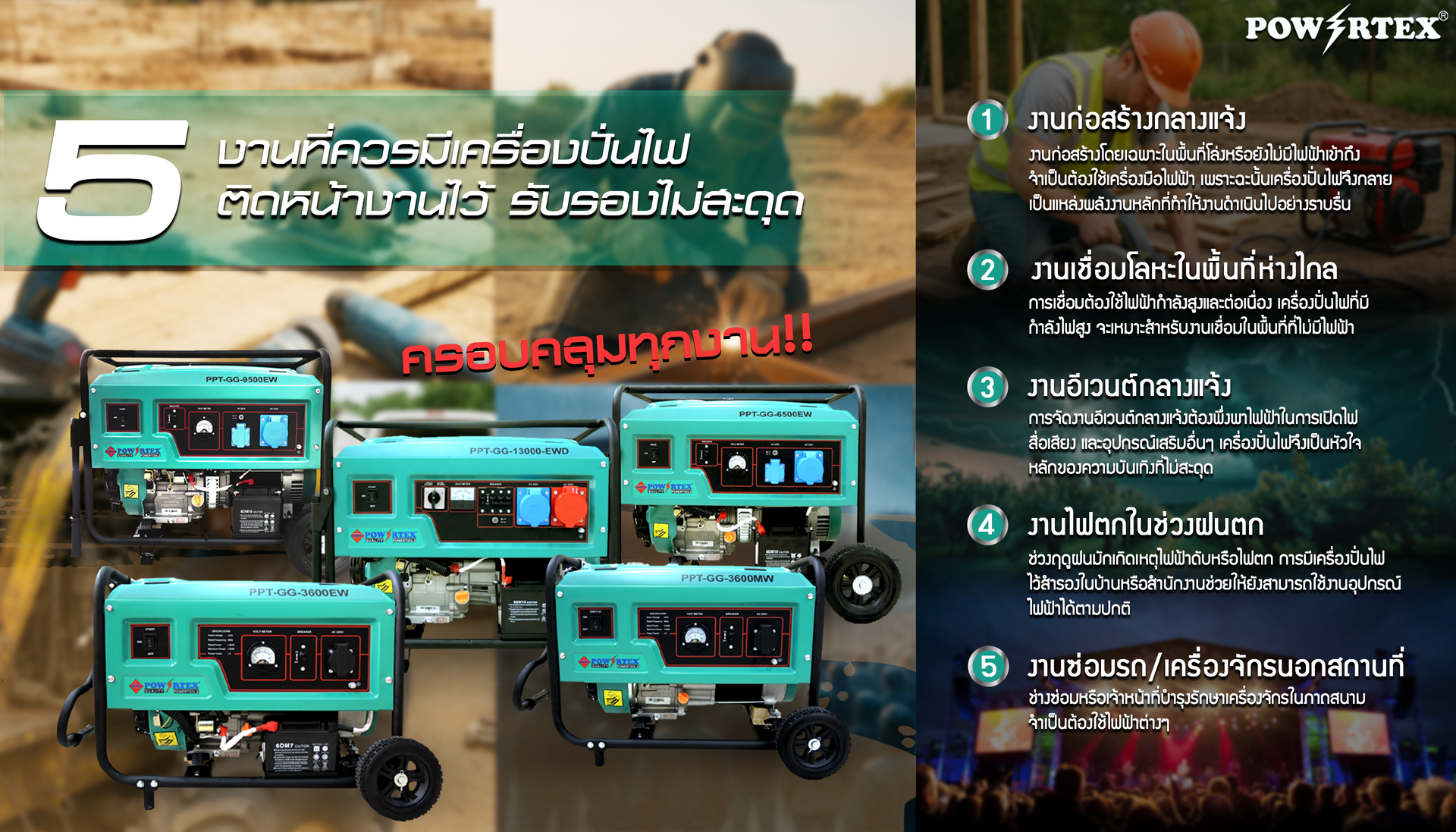 🔋 POWERTEX มีให้เลือกถึง 5 รุ่น ครอบคลุมทุกงาน: