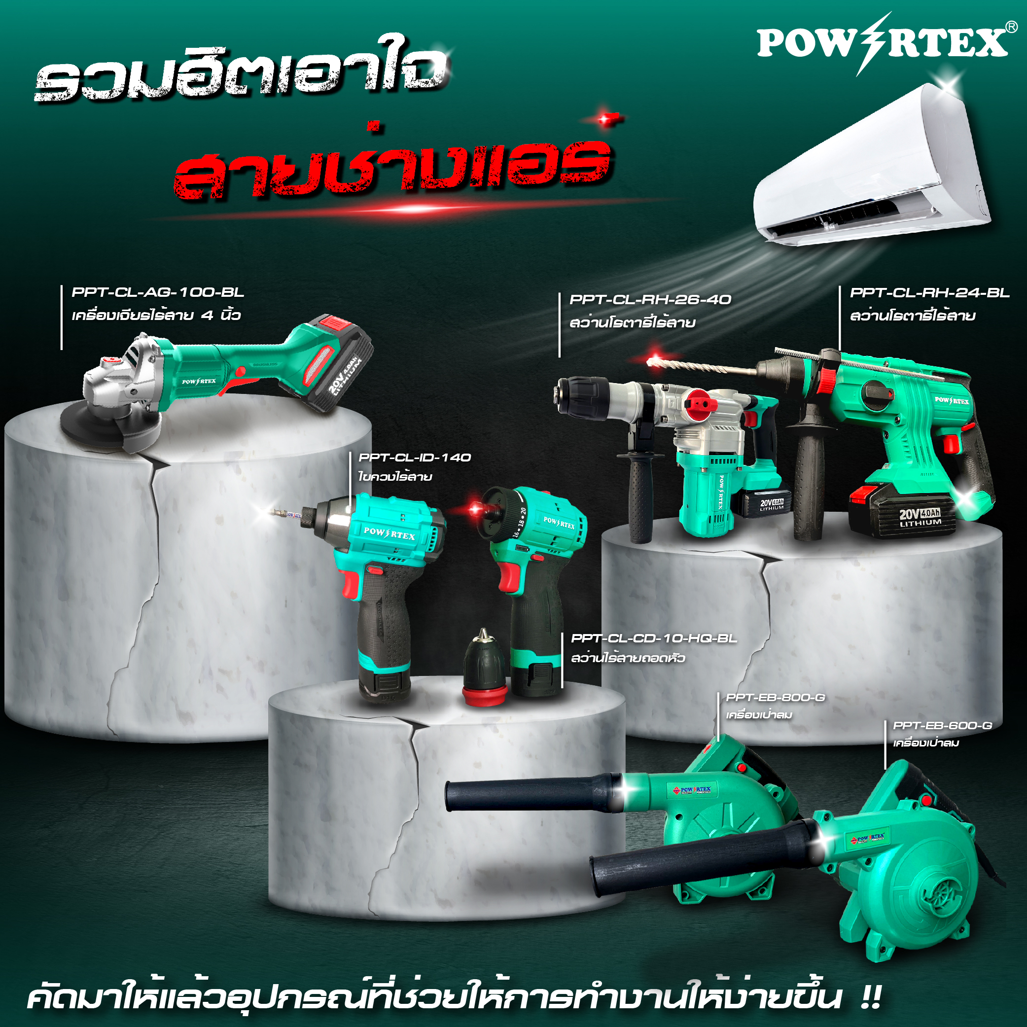 เครื่องเป่าลม (ปรับระบบ) : เป่าทำความสะอาดแผงแอร์และพื้นที่ทำงาน