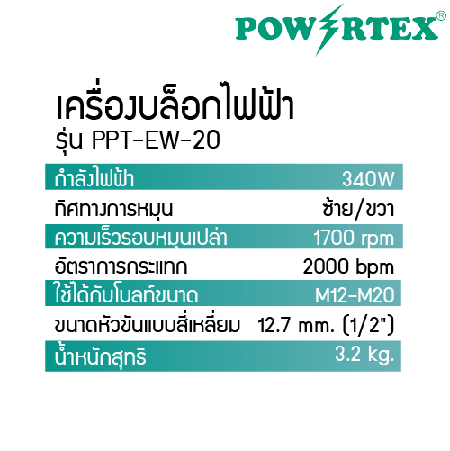 POWERTEX | บล็อกไฟฟ้า 2 ทาง 340W รุ่นPPT-EW-20