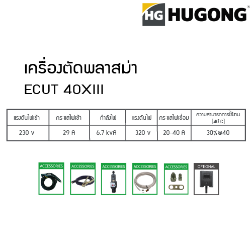 รายละเอียดและคุณสมบัติของเครื่องตัดพลาสม่า ECUT 40X III