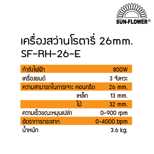 SUN-FLOWER | เครื่องสว่านโรตารี่ 26mm. รุ่นSF-RH-26-E