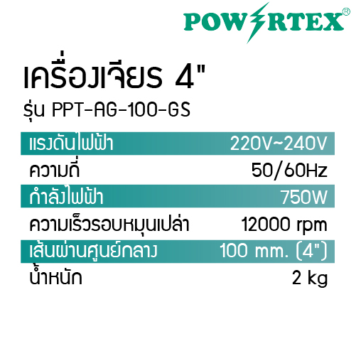 POWERTEX | เครื่องเจียรไฟฟ้า 4 นิ้ว รุ่น PPT-AG-100-GS