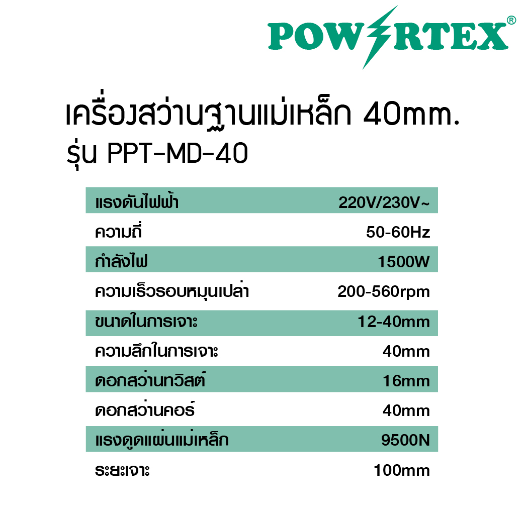 • ขนาดในการเจาะ 12-40mm