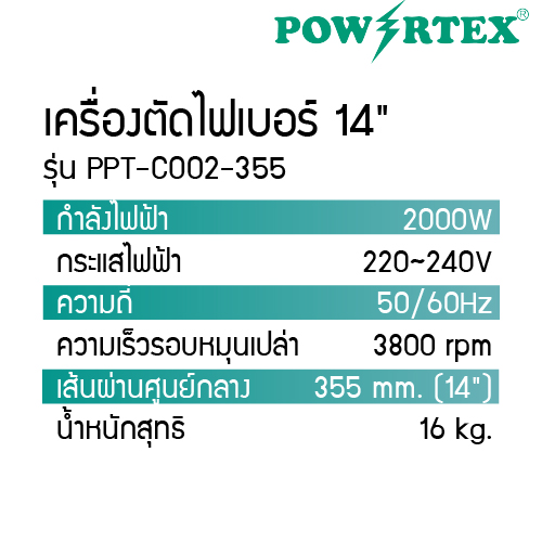 POWERTEX | เครื่องตัดไฟเบอร์ 14 นิ้ว 2000W รุ่นPPT-CO-02-355
