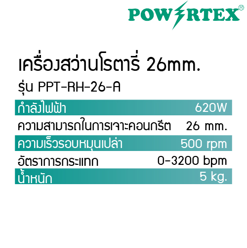 POWERTEX | สว่านโรตารี่ 2 ระบบ 620W รุ่นPPT-RH-26-A