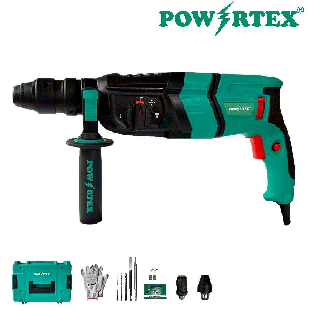 POWERTEX PPT-RH-24-DFR คือสว่านกระแทกแบบโรตารี่ 3 ระบบ ขนาด 24 มม. ที่ขับเคลื่อนด้วยมอเตอร์กำลังไฟ 780W มอบพลังงานต่อเนื่องสำหรับงานเจาะหนัก ไม่ว่าจะเป็นคอนกรีต ผนังอิฐ เหล็ก หรือไม้แข็ง ออกแบบมาเพื่อช่างมืออาชีพที่ต้องการความทนทาน แรงกระแทกสูง และการทำงานที่แม่นยำ ด้วยอัตรากระแทกสูงสุด 0-4850 bpm สว่านรุ่นนี้สามารถเจาะวัสดุแข็งได้อย่างมีประสิทธิภาพ ลดแรงสั่นและช่วยให้ทำงานได้เร็วขึ้น หัวจับดอก 24 มม. พร้อมโหมดหมุนซ้าย-ขวา ทำให้ใช้งานได้อเนกประสงค์ทั้งเจาะ ขัน หรือคลายน็อต เสมือนมีไขควงไฟฟ้าในตัวเดียว น้ำหนักเบาเพียง 1.7 กก. ใช้งานนานได้โดยไม่เมื่อยมือ เหมาะทั้งงานก่อสร้าง งานติดตั้ง งานซ่อมบำรุง และงาน DIY