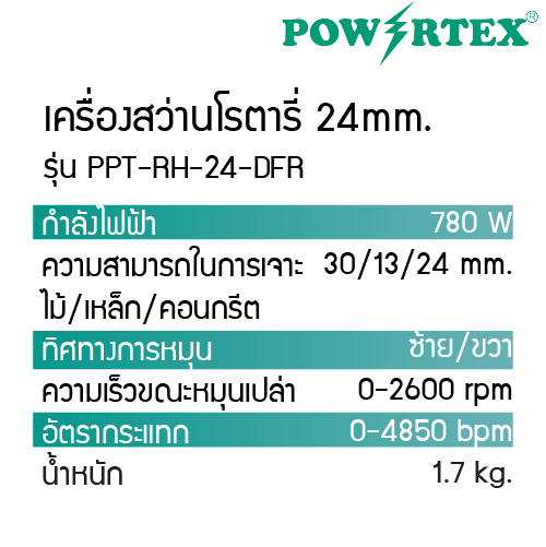 POWERTEX | สว่านโรตารี่ 3 ระบบ 24 mm. 780W รุ่นPPT-RH-24-DFR