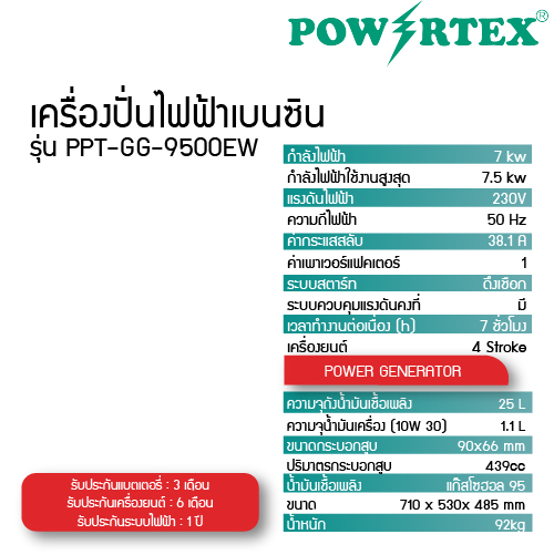 POWERTEX | เครื่องปั่นไฟ รุุ่นPPT-GG-9500EW