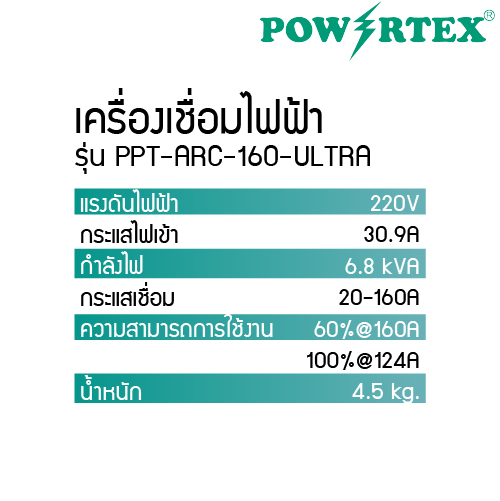 POWERTEX | เครื่องเชื่อมไฟฟ้า 160A รุ่นPPT-ARC-160-ULTRA