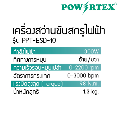 POWERTEX | เครื่องขันสกูรไฟฟ้า 2 ทาง 300W รุ่นPPT-ESD-10