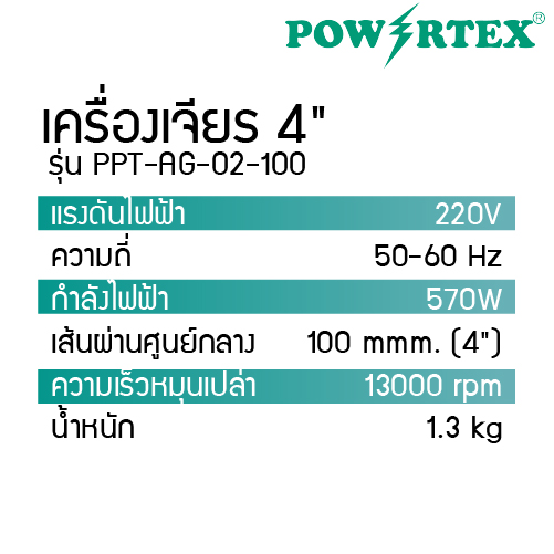 POWERTEX | เครื่องเจียรไฟฟ้า 4 นิ้ว 570W รุ่นPPT-AG-02-100