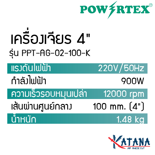 POWERTEX | เครื่องเจียรไฟฟ้า 4นิ้ว รุ่น PPT-AG-02-100-K
