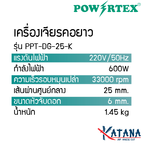 POWERTEX | เครื่องเจียรคอยาว 25mm. รุ่น PPT-DG-25-K