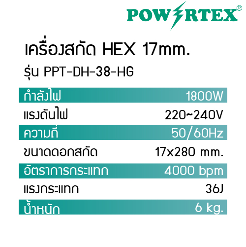 POWERTEX | เครื่องสกัด HEX 17mm รุ่นPPT-DH-38-HG