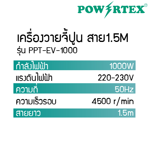 POWERTEX | เครื่องวายจี้ปูน สาย1.5M รุ่น PPT-EV-1000