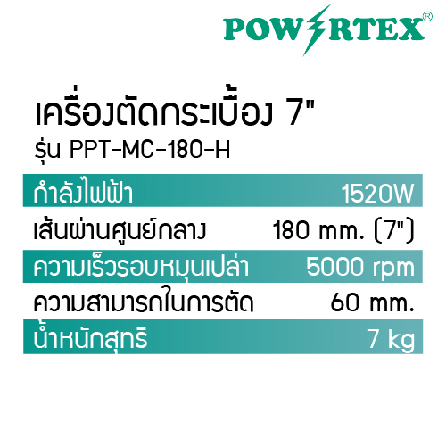 POWERTEX | เครื่องตัดกระเบื้อง 7 นิ้ว 1520W รุ่นPPT-MC-180-H