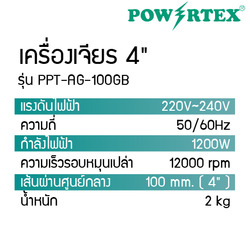 POWERTEX | NEW! เครื่องเจียรไฟฟ้า 4 นิ้ว 1200W รุ่นPPT-AG-100-GB 100MM