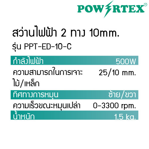 POWERTEX | สว่านไฟฟ้า 2 ทาง 500W รุ่นPPT-ED-10-C