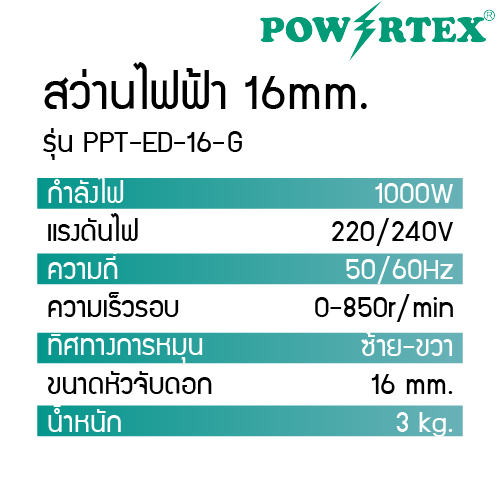POWERTEX | สว่านไฟฟ้า 6mm. รุ่น PPT-ED-6-G