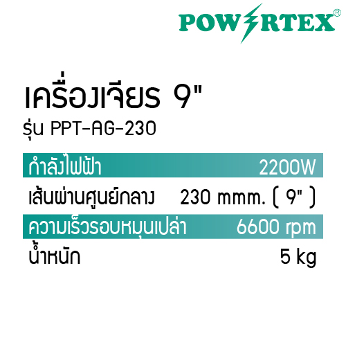 POWERTEX | เครื่องเจียรไฟฟ้า 9 นิ้ว 2200W รุ่นPPT-AG-230