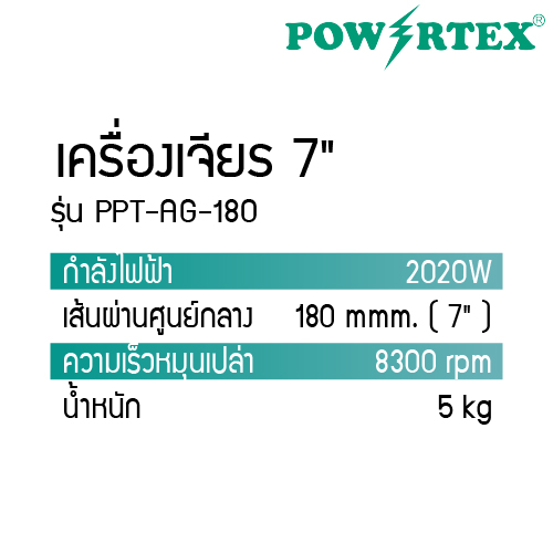 POWERTEX | เครื่องเจียรไฟฟ้า 7 นิ้ว 2020W รุ่นPPT-AG-180