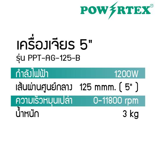 POWERTEX | เครื่องเจียรมือไฟฟ้า 5'นิ้ว 1200W รุ่นPPT-AG-125-B