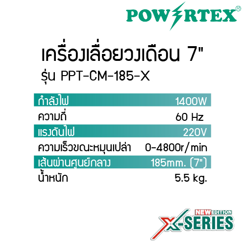POWERTEX | เครื่องเลื่อยวงเดือน 7 นิ้ว รุ่น PPT-CM-185-X