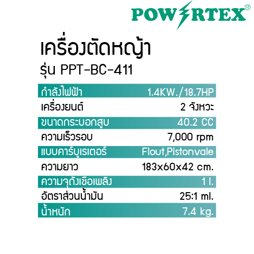 POWERTEX | เครื่องตัดหญ้า 1.4KW/18.7HP รุ่นPPT-BC-411
