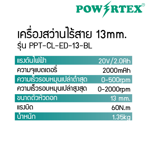 POWERTEX | สว่านไร้สาย รุ่นPPT-CL-ED-13-BL